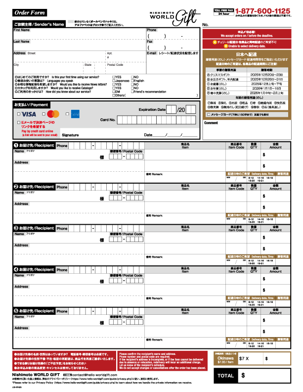 Nishimoto WORLD GIFT について 会社概要 特定商取引法に基づく表示 プライバシーポリシー お問合せ |