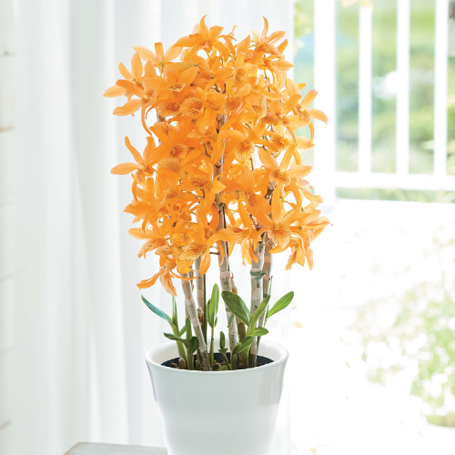 This very rare orange dendrobium was awarded the highest gold medal at the Fenlo International Horticultural Exposition, a major flower exposition held every 10 years in the Netherlands and accredited by the BIE (Bureau International des Expositions) and AIPH (Association Internationale des Pompidouriques).