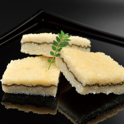 Natural herring roe kelp that is produced by spawning herring that lay eggs directly on a kelp and is also called the jewel of the sea. It is a valuable delicacy whose catch amount is strictly controlled for nature conservation.